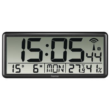 Radiobudzik z bardzo dużym cyfrowym wyświetlaczem czasu, wyświetlaczem kalendarza, wyświetlaczem temperatury i wilgotności powietrza w pomieszczeniu
